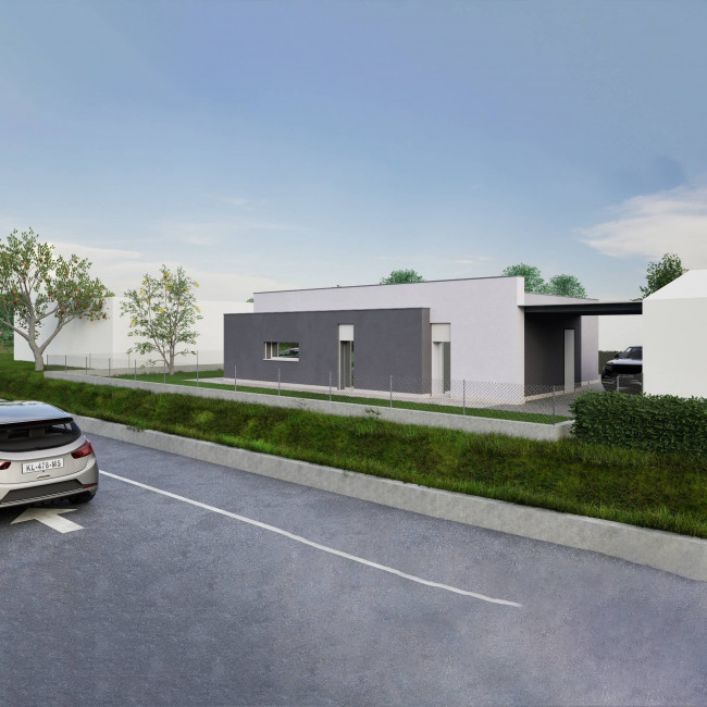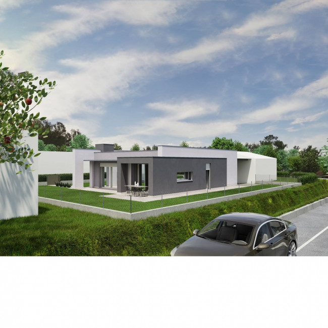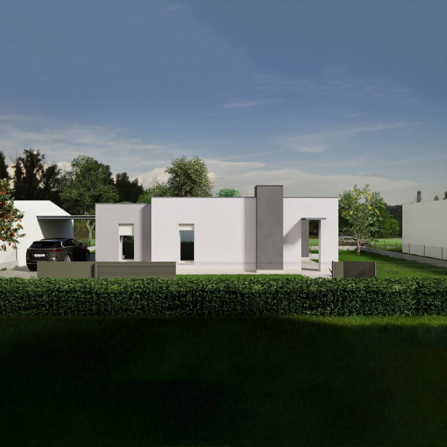 Nel comune di Villorba vendiamo un lotto con il progetto di questa villetta singola dalle forme moderne e dalla distribuzione degli spazi funzionale!